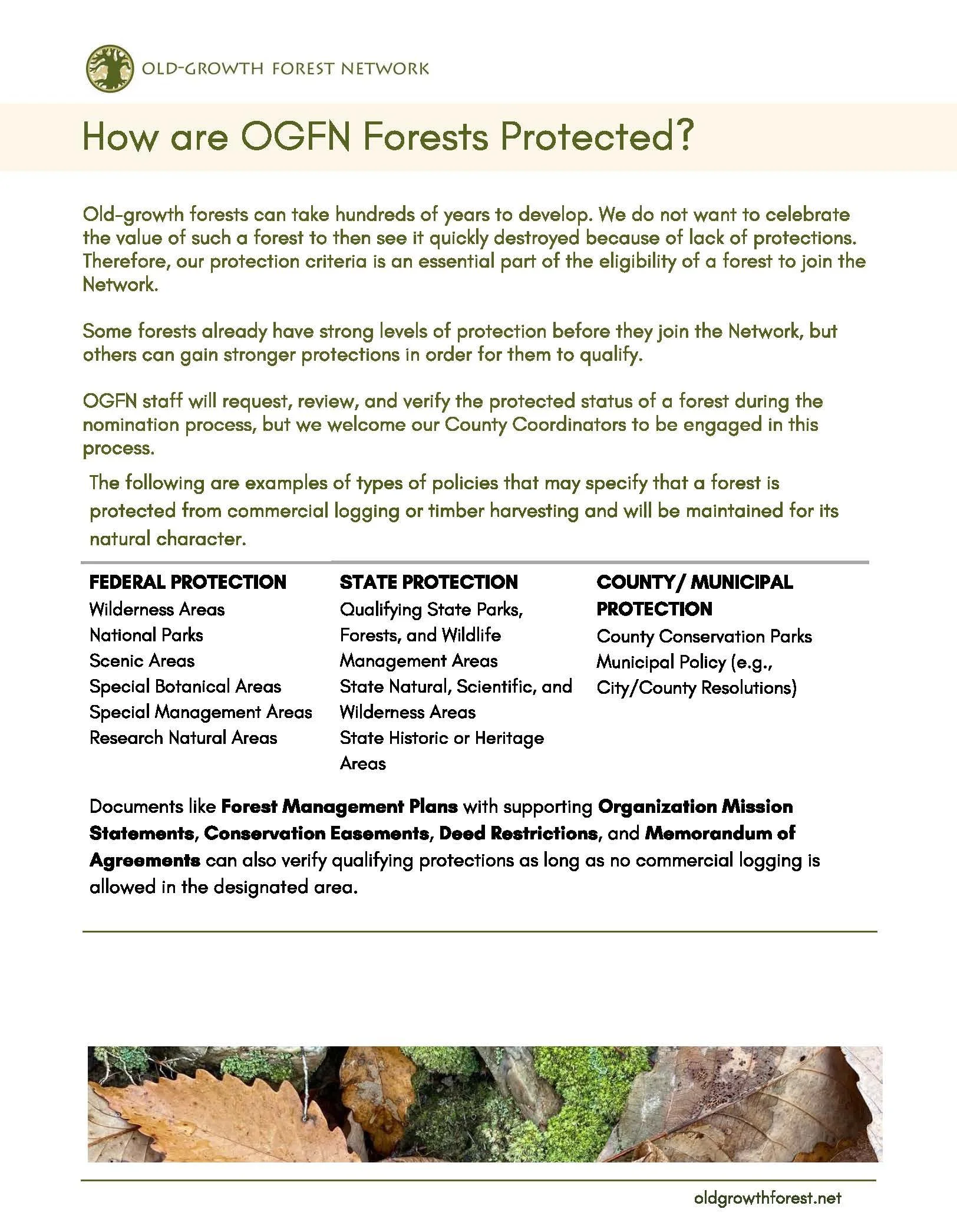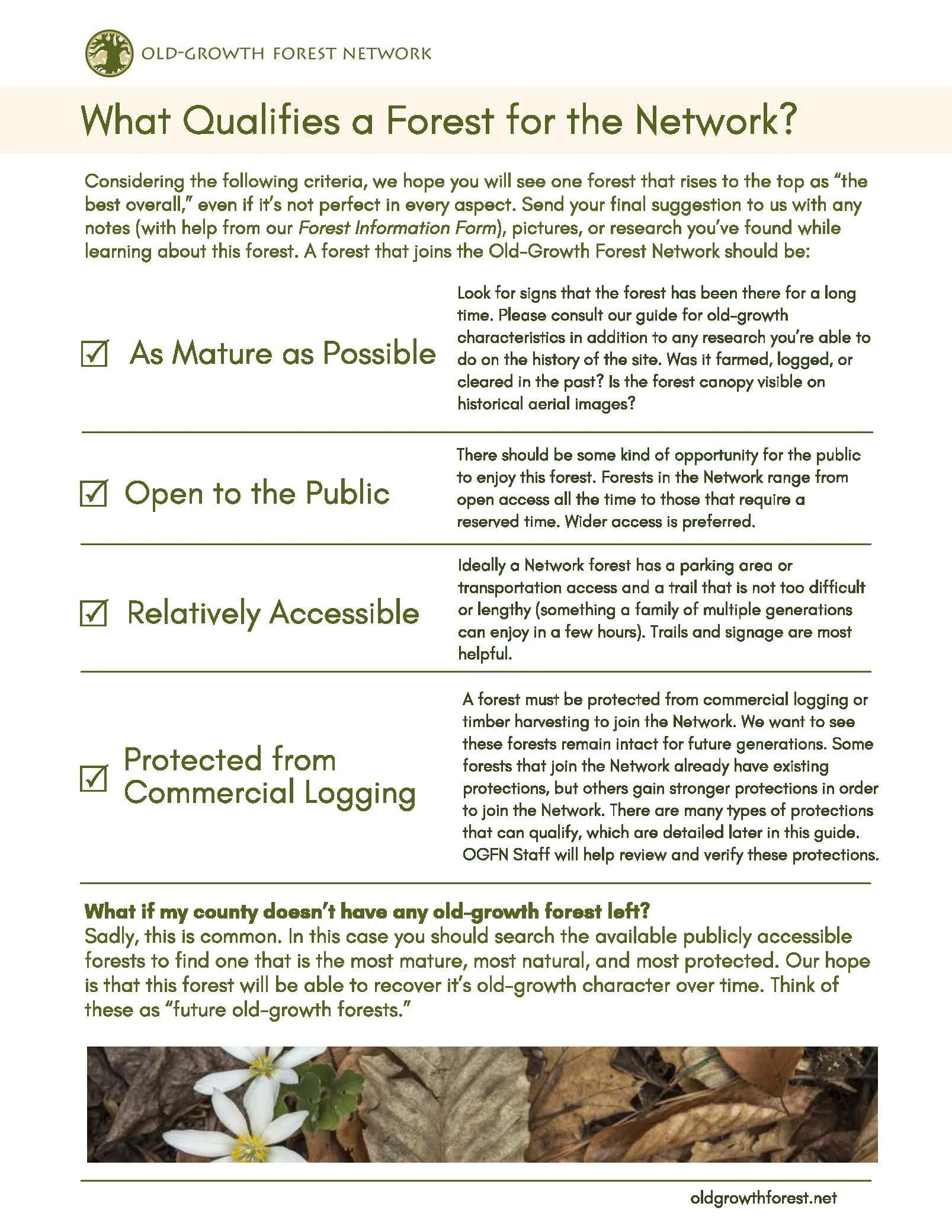 Welcome to our wonderful community of volunteer County Coordinators, who help us to identify and include special forests into the Old-Growth Forest Network. Here are a number of resources you may find helpful as you make your way through the process. We deeply appreciate your time and energy, and look forward to working with you to grow the Network!