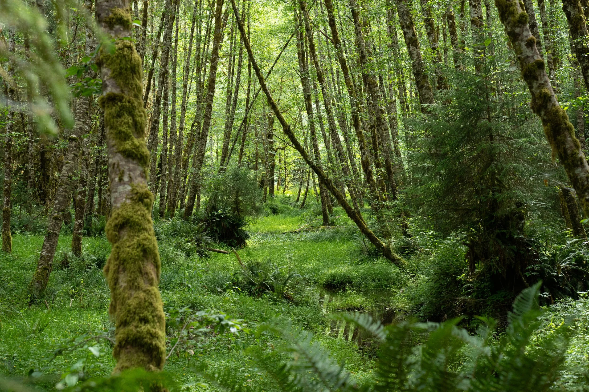The dynamics of an old-growth forest are evident throughout these lowland areas, with decaying, fallen trees often serving as nurse logs for the next generation of seedlings. The constant cycles of growth and decomposition have created a rich layer of soil and abundant rain (sometimes measured in feet) feeds the lush understories of ferns and mosses.